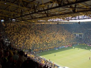 Alguns times como o Borussia Dortmund, dono de uma das torcidas mais apaixonadas da Europa fez algo muito legal em prol de sua fanática torcida. Nos jogos internacionais, como a Champions League ou a Europa League, onde todos os torcedores precisam estar acomodados em cadeiras, eles colocam no setor onde fica o “paredão amarelo”, atrás do gol, assentos removíveis. Ou seja, na Bundesliga eles torcem em pé. Aliás, há uma lei na Alemanha para que se respeite a tradição dos torcedores, e que pelo menos 10% dos lugares sejam destinados aos que gostam de torcer em pé. São as tribunas Stehplatz.
