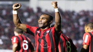Ao acertar o pênalti, Guerrón fez seu 5o gol no Campeonato Paranaense e ajudou o Rubro-Negro a bater o Arapongas. Foto: Assessoria de Comunicação Atlético-PR