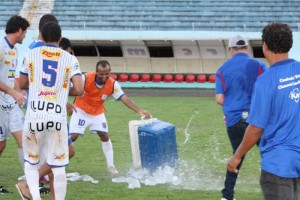 Jogadores e o técnico Paulo Turra comemoram classificação para a Série D. Foto: Andye Iore/ Assessoria de Comunicação Cianorte FC