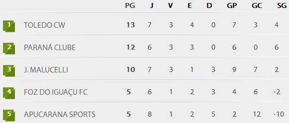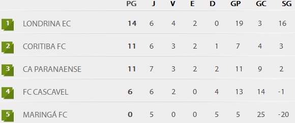 No grupo E, a equipe do Londrina lidera com 14 pontos, seguido da dupla Atletiba com 11 pontos. Os dois primeiros colocados de cada grupo avançam às semifinais do torneio.