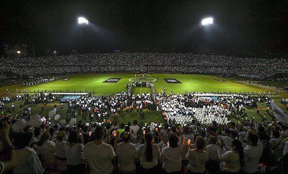 A noite desta quarta-feira (30), dia em que aconteceria o primeiro jogo da final da Sulamericana, foi de homenagens as vítimas que perderam a vida no acidente aéreo na queda do avião que transporta o time da Chapecoense e a Imprensa Brasileira. A Arena Condá, em Chapecó (SC) e o Estádio Anatásio Girardot, em Medellín (COL), foram palcos de grandes emoções. Tomado de torcedores, o que se viu foi uma comoção sem precedentes na história do futebol mundial. Vestidos de brancos, catarinenses e colombianos entoaram gritos de saudação aos 71 mortos.